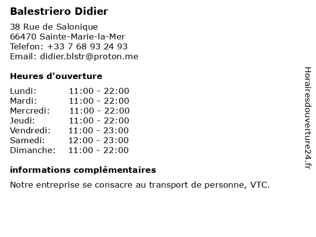 | Vendredi | 11:00-23:00 |