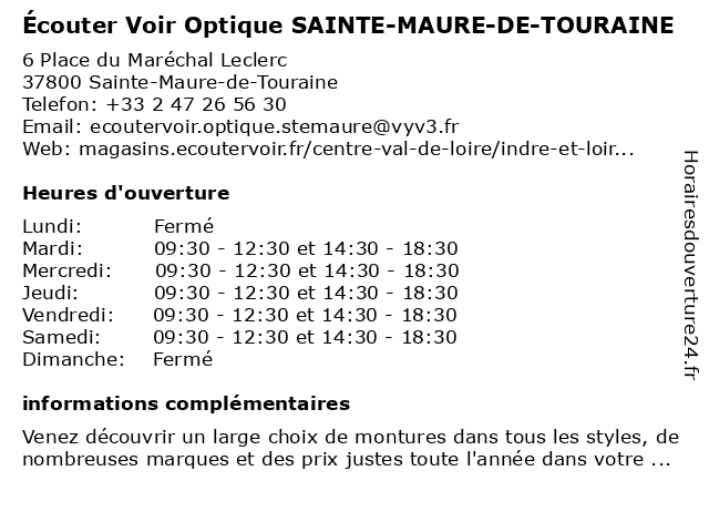 | Mardi | 09:30-12:30 et 14:30-18:30 |