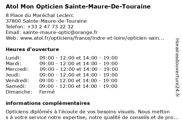 | Samedi | 09:00-12:00 et 14:00-19:00 |