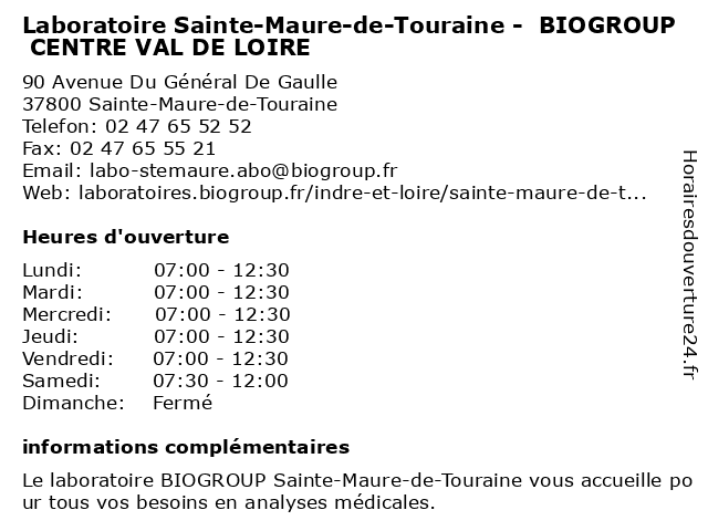 Termes de recherche pour Laboratoire Sainte-Maure-de-Touraine - BIOGROUP CENTRE VAL DE LOIRE:sainte, val, de, loire, laboratoire, centre, touraine, maure, biogroup, dépistages, laboratoire de diagnostic |
