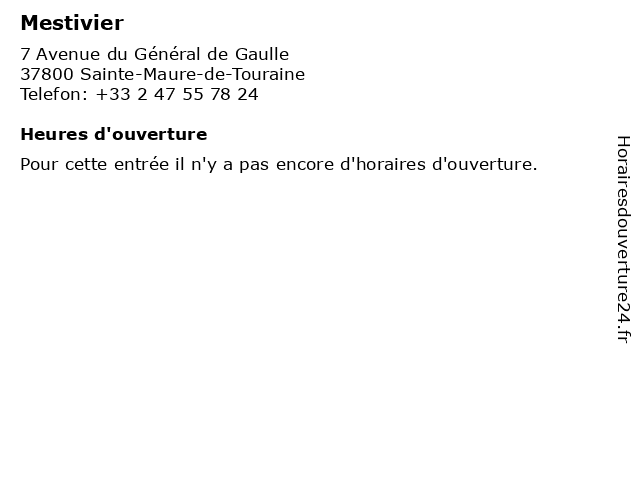 1 Mestivier (Distance: 26,88 km)2 Rue Augustin Fresnel, 37170 Chambray-lès-Tours mestivier