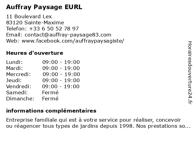 | Samedi | Fermé |