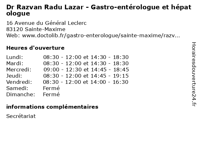 | Lundi | 08:30-12:00 et 14:30-18:30 |