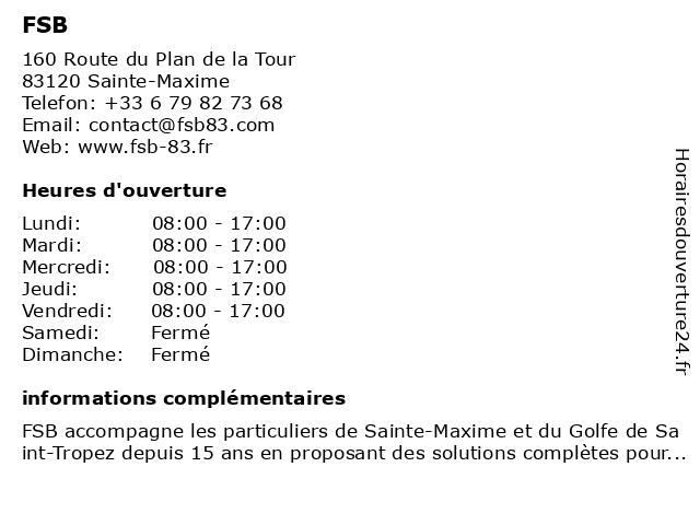 | Samedi | Fermé |