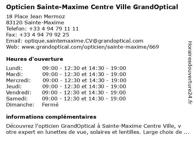 | Samedi | 09:00-12:30 et 14:30-19:00 |