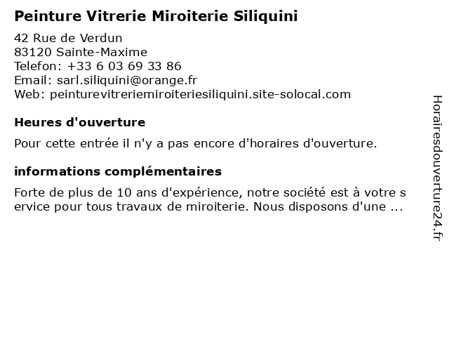 | Appeler Peinture Vitrerie Miroiterie Siliquini | |