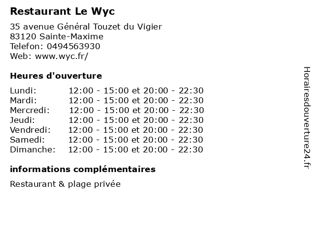 | Dimanche | 12:00-15:00 et 20:00-22:30 |