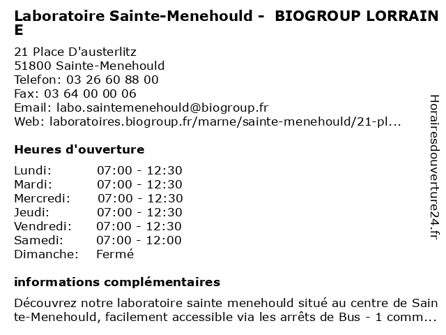Termes de recherche pour Laboratoire Sainte-Menehould - BIOGROUP LORRAINE:sainte, menehould, laboratoire, lorraine, biogroup, dépistages, laboratoire de diagnostic |