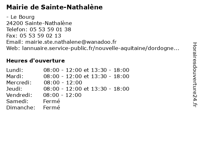 Termes de recherche pour Mairie de Sainte-Nathalène:sainte, de, administration, mairie, assoc public, nathalène |