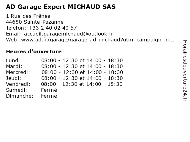 1 Ad Net Electrique Domotique (Distance: 3,76 km) 2 Le Fief Soudain, 44710 Port-Saint-Père ad, domotique, electrique, net 2 AD Auto Distribution (Distance: 10,83 km) 1 Rue Pierre Gilles De Gennes, 44640 Saint Jean De Boiseau ad, auto, automobiles, concessionnaire, distribution, garage, motos 3 AD Garage Expert CHAUMES AUTOMOBILE (Distance: 11,46 km) Zone d'activité Zone du Butai, 44320 Chaumes-en-Retz ad, automobile, chaumes, expert, garage 4 AD Garage AUTO PERFECT 44 (Distance: 12,07 km) 33 Route de Nantes, 44640 Vue 44, ad, auto, changement d'huile, contrôle technique, diagnostic automobile, diagnostic électronique, dépannage automobile, entretien de véhicules, freins et suspension, garage, garage automobile, mécanique automobile, perfect, pneus et alignement, remplacement de pièces auto, réparation automobile, réparation de la climatisation auto, révision mécanique, service de réparation de voitures, système de refroidissement, échappement automobile, électricité automobile 5 AD Carrosserie FRANCK RONSIN SARL (Distance: 13,85 km) 43 Rue Marcel Brunelière, 44270 Machecoul-Saint-Même ad, carrosserie, changement d'huile, contrôle technique, diagnostic automobile, diagnostic électronique, dépannage automobile, entretien de véhicules, franck, freins et suspension, garage automobile, mécanique automobile, pneus et alignement, remplacement de pièces auto, ronsin, réparation automobile, réparation de la climatisation auto, révision mécanique, sarl, service de réparation de voitures, système de refroidissement, échappement automobile, électricité automobile 6 Baker Tilly | Expert-Comptable - Machecoul (Distance: 13,88 km) 3 Rue Clément Ader, 44270 Machecoul-Saint-Même baker, comptable, expert, machecoul, tilly |
