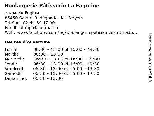 Termes de recherche pour Boulangerie Pâtisserie La Fagotine:la, alimentation, commerce, boulangerie, pain, gateaux, pâtisserie, baguette, fagotine, sainte-radégonde-des-noyers |