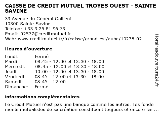 Termes de recherche pour CAISSE DE CREDIT MUTUEL TROYES OUEST - SAINTE SAVINE:sainte, de, troyes, crédit, ouest, mutuel, caisse, savine |