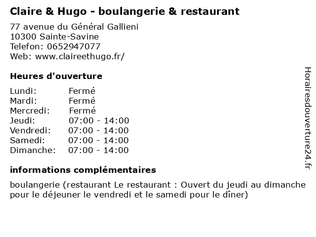 Termes de recherche pour Claire & Hugo - boulangerie & restaurant:restaurant, boulangerie, hugo, pain, claire, snacking |