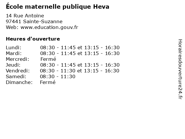 | Mardi | 08:30-11:45 et 13:15-16:30 |