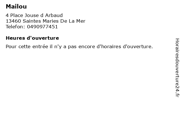 1 Mailou (Distance: 28,89 km)51 a Chemin De l Usine d Engrais, 13200 Arles mailou, restaurants