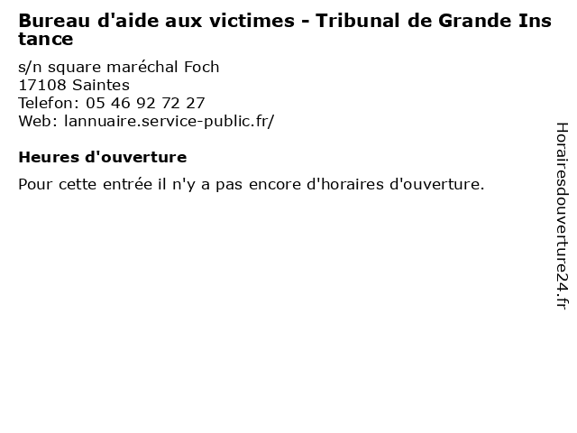 | Appeler Bureau d'aide aux victimes - Tribunal de Grande Instance | |
