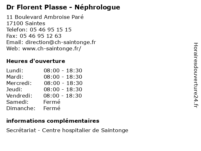 1 Dr Caroline Araujo - Néphrologue (Distance: 0,00 km) 11 Boulevard Ambroise Paré, 17100 Saintes araujo, caroline, consultation, docteur, dr, med, médecin, néphrologue, traitement 2 Dr Hervé Bonarek - Néphrologue (Distance: 0,00 km) 11 Boulevard Ambroise Paré, 17100 Saintes bonarek, consultation, docteur, dr, herve, hervé, med, médecin, néphrologue, traitement 3 Girard Florent (Distance: 31,02 km) Monsieur Florent Girard, 17132 Meschers Sur Gironde florent, girard, restaurants 4 Dr Florent Plasse - Néphrologue (Distance: 33,65 km) 20 Avenue de Saint-Sordelin Plage, 17640 Vaux-sur-Mer dr, florent, hémodialyse, intensifs, néphrologie, néphrologue, plasse 5 Florent Delaplace - Pédicure-Podologue (Distance: 35,89 km) 5 Place Carnot, 17320 Marennes delaplace, florent, pied, podologie, podologue, pédicure, romain, santé 6 Boucherie Pacraud Florent (Distance: 43,04 km) - Place du Marché, 17450 Fouras boeuf, boucherie, boucheries, charcuterie, florent, pacraud, volaille |