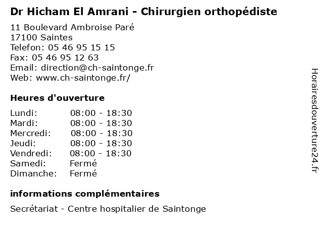 1 Dr Mustapha El Hamdi - Chirurgien orthopédiste (Distance: 0,00 km) 11 Boulevard Ambroise Paré, 17100 Saintes chirurgien, consultation, docteur, dr, el, hamdi, med, mustapha, médecin, orthopédiste, traitement 2 Dr Youssef El Far - Pneumologue (Distance: 0,00 km) 11 Boulevard Ambroise Paré, 17100 Saintes consultation, docteur, dr, el, far, med, médecin, pneumologue, traitement, youssef 3 Dr Philippe Besnard - Chirurgien orthopédiste (Distance: 0,00 km) 11 Boulevard Ambroise Paré, 17100 Saintes besnard, chirurgien, consultation, docteur, dr, med, médecin, orthopédiste, philippe, traitement 4 Dr Serge Verliac - Chirurgien orthopédiste (Distance: 0,00 km) 11 Boulevard Ambroise Paré, 17100 Saintes chirurgien, consultation, docteur, dr, med, médecin, orthopédiste, serge, traitement, verliac 5 Dr François Yaouanc - Chirurgien orthopédiste (Distance: 0,00 km) 11 Boulevard Ambroise Paré, 17100 Saintes chirurgien, consultation, docteur, dr, francois, françois, med, médecin, orthopédiste, traitement, yaouanc 6 Dr Rachid El Amarti - Oncologue (Distance: 28,84 km) 65 Avenue D Angoulême, 16100 Cognac amarti, centre, chimiothérapie, cognac, de, dr, du, el, hospitalier, hémopathie, immunothérapie, intercommunal, oncologie, oncologue, pays, rachid |