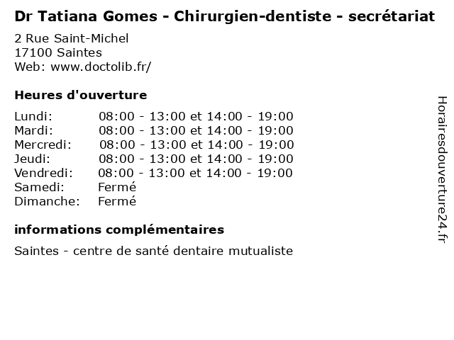 | Lundi | 08:00-13:00 et 14:00-19:00 |
