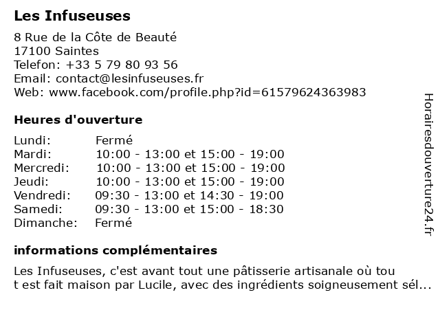 | Mardi | 10:00-13:00 et 15:00-19:00 |