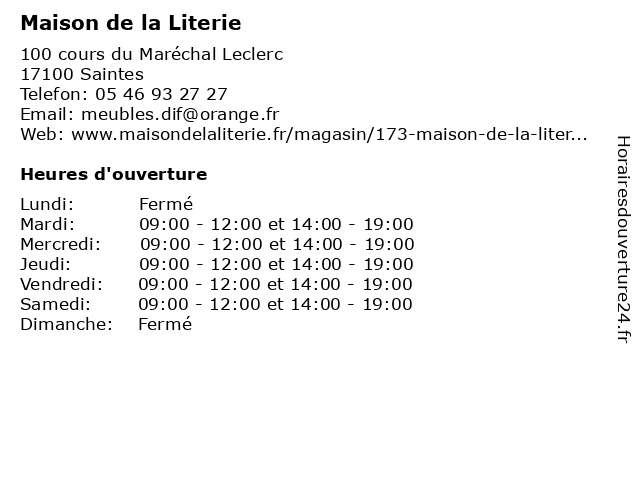 | Samedi | 09:00-12:00 et 14:00-19:00 |