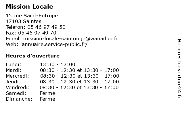 | Mercredi | 08:30-12:30 et 13:30-17:00 |