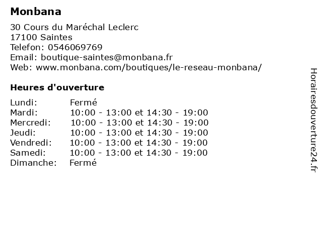 | Mercredi | 10:00-13:00 et 14:30-19:00 |