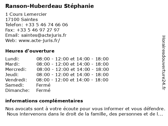 1 Maître Vincent Huberdeau - Avocat (Distance: 0,01 km) 1 Cours Lemercier, 17100 Saintes avocat, avocate, avocats, civils, droits, huberdeau, juridiques, maître, vincent 2 Maître Vincent Huberdeau - Avocat (Distance: 0,01 km) 1 Cours Lemercier, 17100 Saintes avocat, avocate, avocats, civils, droits, huberdeau, juridiques, maître, vincent 3 Maître Stéphanie Ranson-Huberdeau - Avocate (Distance: 0,01 km) 1 cours Lemercier, 17100 Saintes avocate, avocats, civils, droits, huberdeau, juridiques, maître, ranson, stéphanie 4 Maître Stéphanie Delhumeau-Didelot - Avocate (Distance: 0,01 km) 1 Cours Lemercier, 17100 Saintes avocat, avocate, delhumeau, didelot, droit, juridictionnelle, maître, négociation, stéphanie 5 Fruchard-Laurent Stéphanie (Distance: 0,12 km) 93 Cours National, 17100 Saintes fruchard, laurent, stéphanie 6 Maître Stéphanie Brin - Avocate (Distance: 1,03 km) 87 avenue Gambetta, 17100 Saintes avocate, avocats, brin, civils, droits, juridiques, maître, stéphanie |