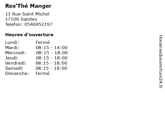 | Dimanche | Fermé |