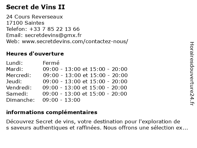 | Samedi | 09:00-13:00 et 15:00-20:00 |