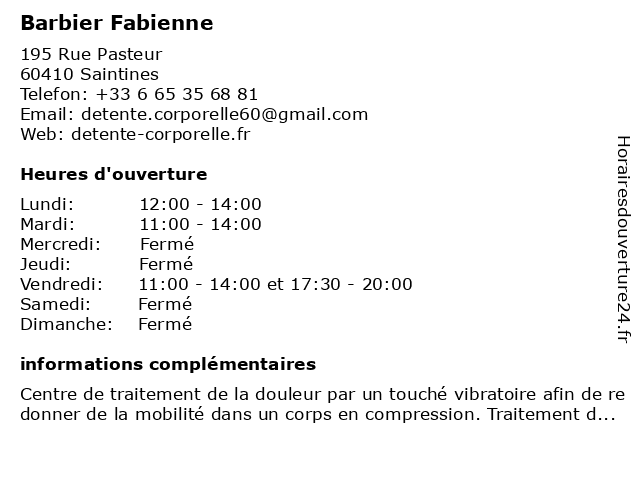 1 Dr Fabienne Garoutte - Médecin généraliste (Distance: 10,99 km) 2 Avenue du Camp de Royallieu, 60200 Compiègne consultation, docteur, dr, fabienne, garoutte, généraliste, med, médecin, traitement 2 Star Coiffure (Distance: 11,57 km) 32 avenue Jean Jaurès, 60700 Pont-Sainte-Maxence barbier, beauté, coiffure, femmes, hommes, mixte, salon, star, style 3 Jean Louis David (Distance: 20,66 km) - Route Nationale 16, 60740 Saint Maximin barbier, beauté, cheveux, coiffeur, coiffure, david, esthétique, jean, louis, salon, visagiste 4 G&B Barbershop (Distance: 21,49 km) 57 rue de la République, 60100 Creil barbershop, barbier, beauté, coiffure, creil, femmes, g&b, hommes, mixte, salon, style 5 O'Chester Barber Shop (Distance: 21,51 km) 15 rue Miss Edith Cawel, 60100 Creil barbe, barber, barbier, chester, coiffeur, coupe, homme, o', o'chester, rasage, shop 6 Style R Coiff’ (Distance: 32,15 km) 2 place Cantrel, 60250 Mouy barbier, beauté, coiffeur, coiffure, coiff’, de, salon, style |