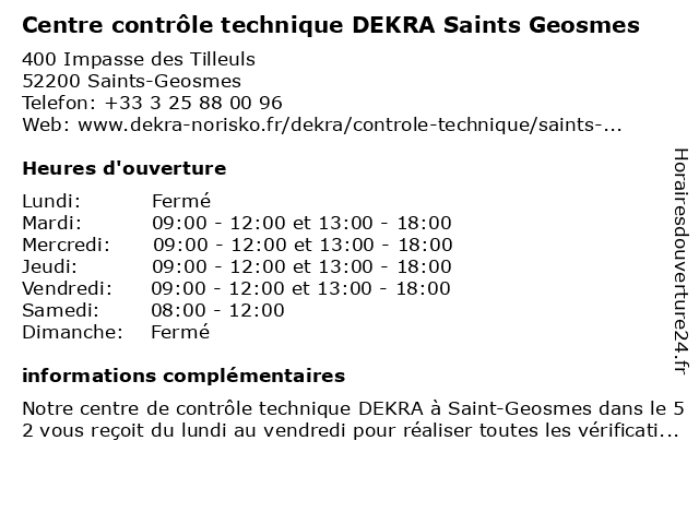 1 Sécuritest Contrôle Technique Auto-Moto (Distance: 0,59 km) 8 Rue De La Vignotte, 52200 Saints Geosmes auto, contrôle, moto, sécuritest, technique 2 Contrôle Technique Langrois (Distance: 2,39 km) 1 Avenue du Capitaine Baudoin, 52200 Langres contrôle, langrois, technique 3 Mon Contrôle Technique (Distance: 4,24 km) Avenue de Chaumont, 52200 Langres contrôle, mon, technique 4 Centre contrôle technique NORISKO (Distance: 8,63 km) 15 Rue Hoche, 52600 Chalindrey 4x4, camping car, centre, collection, contrôle, diesel, electrique, essence, gazole, norisko, suv, technique, utilitaire, voiture 5 CTM Poids lourds et Véhicules légers Contrôle Technique Montsaugeonnais (Distance: 16,92 km) Zoning Industriel, 52190 Le Montsaugeonnais contrôle, ctm, et, lourds, légers, montsaugeonnais, poids, technique, véhicules 6 Centre contrôle technique DEKRA (Distance: 32,81 km) 4 Rue des Forces Françaises Libres, 52000 Chaumont 4x4, camping car, centre, collection, contrôle, dekra, diesel, electrique, essence, gazole, suv, technique, utilitaire, voiture |