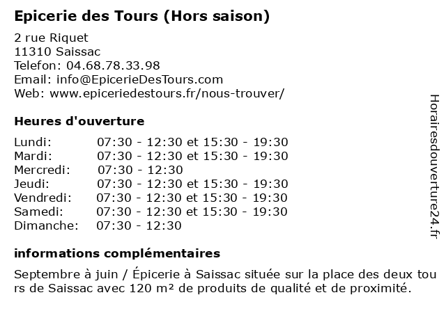 Termes de recherche pour Epicerie des Tours (Hors saison):tours, des, alimentation, épicerie, saison, fruits, légumes, hors, superette |