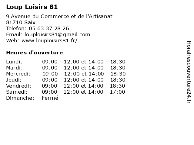 | Lundi | 09:00-12:00 et 14:00-18:30 |
