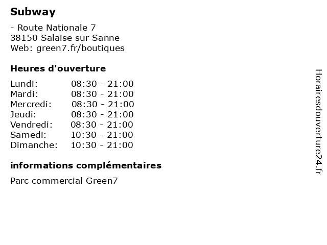 1 Subway (Distance: 3,98 km) Aire De St Rambert Ouest A7, 26140 Saint Rambert d'Albon fast-food, restaurant à emporter, restaurants, subway 2 Subway (Distance: 9,05 km) - Autoroute A7, 26140 Saint Rambert d'Albon restaurant, restauration, subway 3 Subway (Distance: 14,01 km) 2147 Route De Lyon, 07430 Davezieux fast-food, restaurant à emporter, restaurants, subway 5 Subway - Closed (Distance: 4,35 km) Green center 7, 38150 Salaise Sur Sanne closed, fast-food, restaurant à emporter, restaurants, subway 6 Bonobo (Distance: nan km) - Route Nationale 7, 38150 Salaise sur Sanne beauté, bonobo, exceptionnelle, institut, jeux, maison, mode, ouverture, rocher, santé, sports et loisirs, yves |