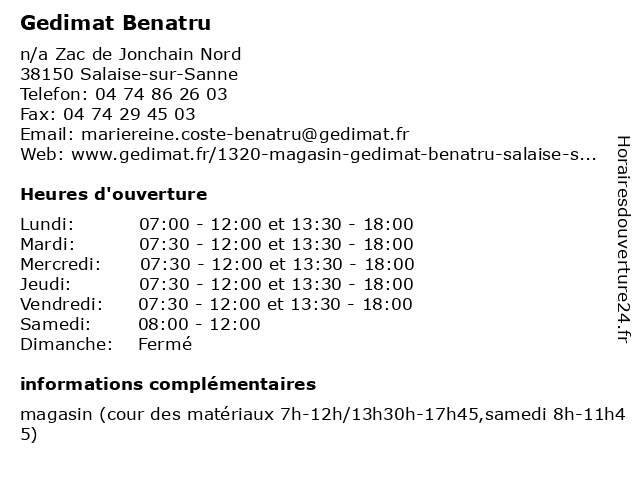 | Lundi | 07:00-12:00 et 13:30-18:00 |