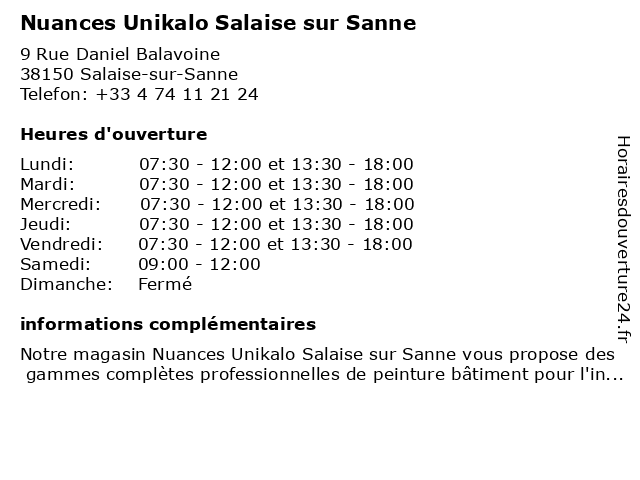 | Lundi | 07:30-12:00 et 13:30-18:00 |