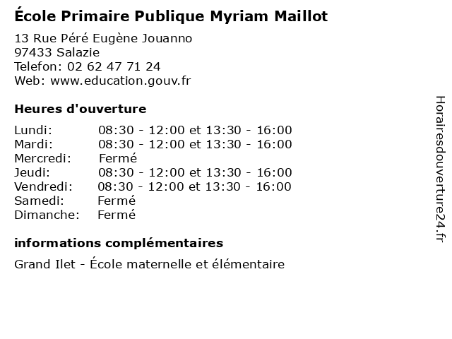 | Lundi | 08:30-12:00 et 13:30-16:00 |