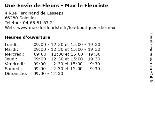 | Samedi | 09:00-12:30 et 15:00-19:30 |