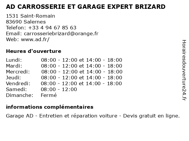 1 Carrosserie Brizard - AD (Distance: 0,02 km) 1531 Route de Draguignan, 83690 Salernes ad, brizard, carrosserie 2 AD Auto Distribution (Distance: 1,14 km) n/a la Baume, 83690 Salernes ad, auto, automobiles, concessionnaire, distribution, garage, motos 3 Carrosserie Cotton Claude et Ludovic SARL (Distance: 10,65 km) 830 Route de Salernes, 83780 Flayosc carrosserie, claude, cotton, et, ludovic, sarl 4 AD Carrosserie du Fournas (Distance: 15,38 km) 891 Avenue Pierre Brossolette, 83300 Draguignan ad, carrosserie, du, fournas 5 AD CARROSSERIE DU FOURNAS (Distance: 15,38 km) 891 Avenue Pierre Brossolette, 83300 Draguignan ad, carrosserie, courroie de distribution, devis réparation voiture, du, entretien auto, fournas, garage, revision voiture, réparateur voiture, réparation carrosserie, vidange 6 AD Auto Distribution (Distance: 16,59 km) 317 Avenue Des Vignerons, 83300 Draguignan ad, auto, automobiles, concessionnaire, distribution, garage, motos |