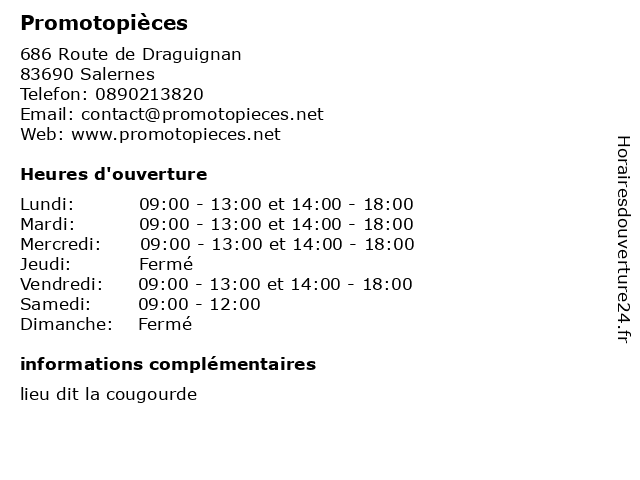Lundi | 09:00-13:00 et 14:00-18:00 |