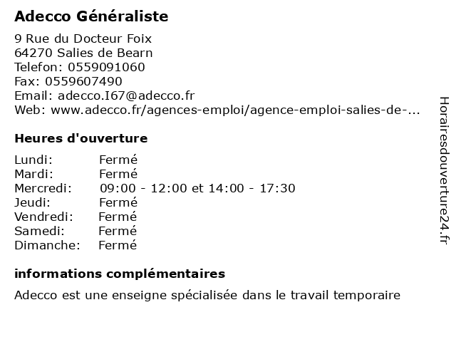 1 Adecco Medical (Distance: 18,56 km) 13 Avenue Frédéric de Saint-Jaymes, 64120 Saint-Palais adecco, agences, cdd, cdi, emploi, emploi intérim, medical, services 2 Adecco Généraliste (Distance: 30,21 km) 1090 Avenue de la République, 64170 Artix adecco, agences, cdd, cdi, emploi, emploi intérim, généraliste, services 3 Adecco Généraliste (Distance: 33,58 km) 57 Rue Sadi Carnot, 40700 Hagetmau adecco, agences, cdd, cdi, emploi, emploi intérim, généraliste, services 4 Adecco BTP (Distance: 36,25 km) 1850 Route de Dax, 40230 St Vincent De Tyrosse adecco, agences, btp, cdd, cdi, emploi, emploi intérim, services 5 Adecco Généraliste (Distance: 41,78 km) 10 Avenue Despourrins, 64400 Oloron Sainte Marie adecco, agences, cdd, cdi, emploi, emploi intérim, généraliste, services 6 |