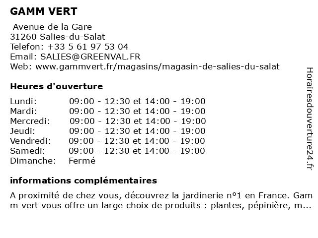 | Samedi | 09:00-12:30 et 14:00-19:00 |