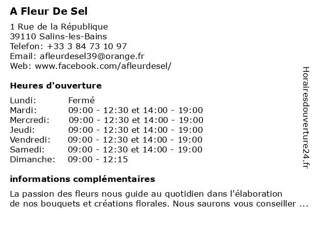 | Samedi | 09:00-12:30 et 14:00-19:00 |