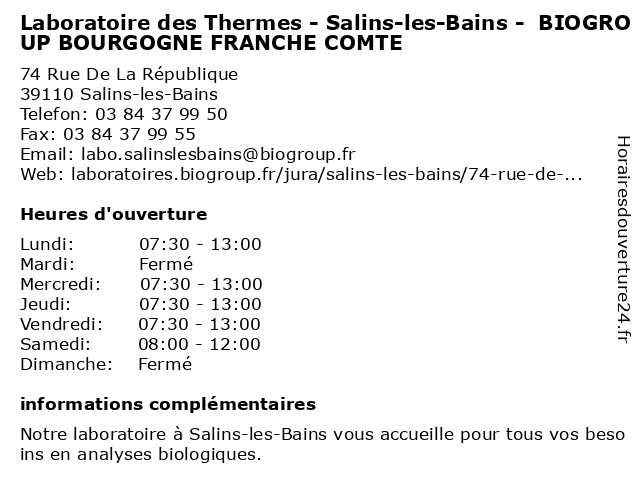 Termes de recherche pour Laboratoire des Thermes - Salins-les-Bains - BIOGROUP BOURGOGNE FRANCHE COMTE:les, bains, comte, salins, des, laboratoire, bourgogne, franche, thermes, biogroup, dépistages, laboratoire de diagnostic |
