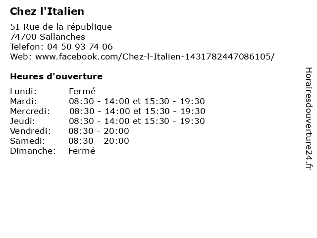| Mardi | 08:30-14:00 et 15:30-19:30 |