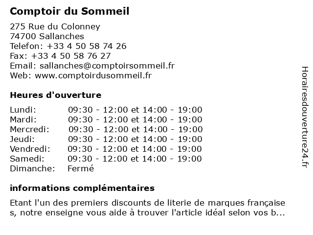 | Samedi | 09:30-12:00 et 14:00-19:00 |