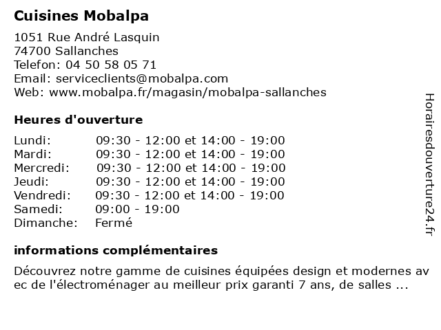 | Lundi | 09:30-12:00 et 14:00-19:00 |