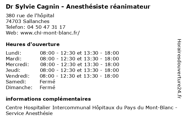 | Jeudi | 08:00-12:30 et 13:30-18:00 |