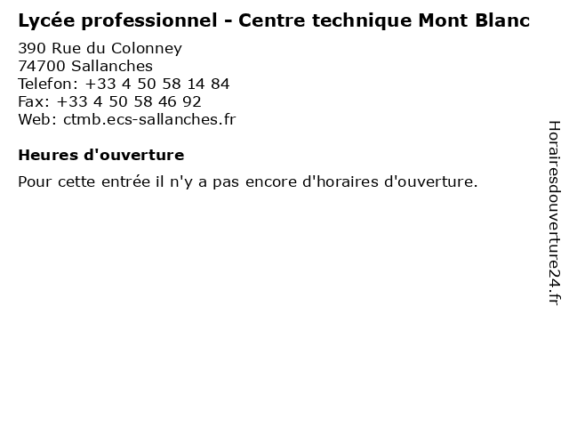 | Appeler Lycée professionnel - Centre technique Mont Blanc | |